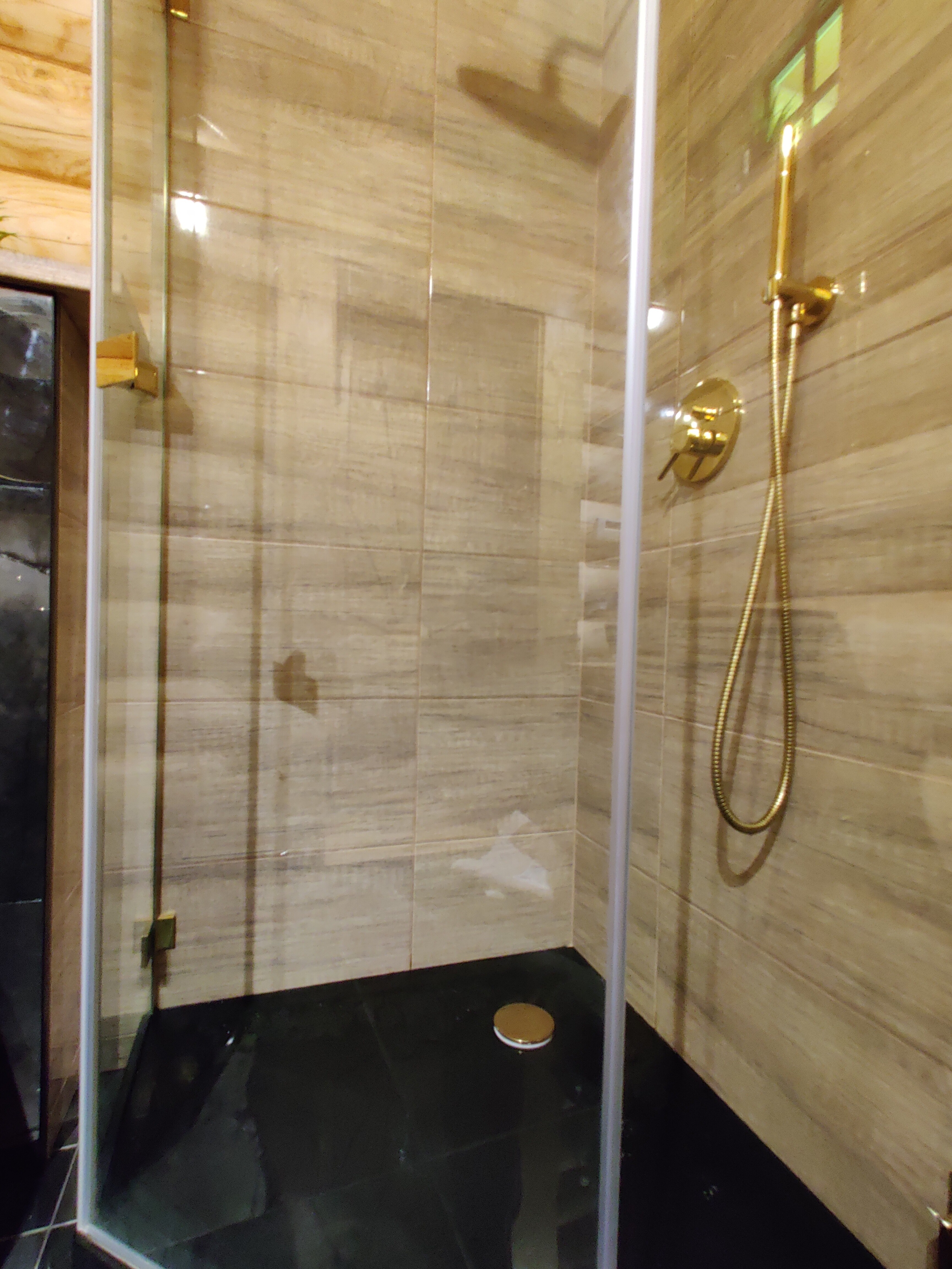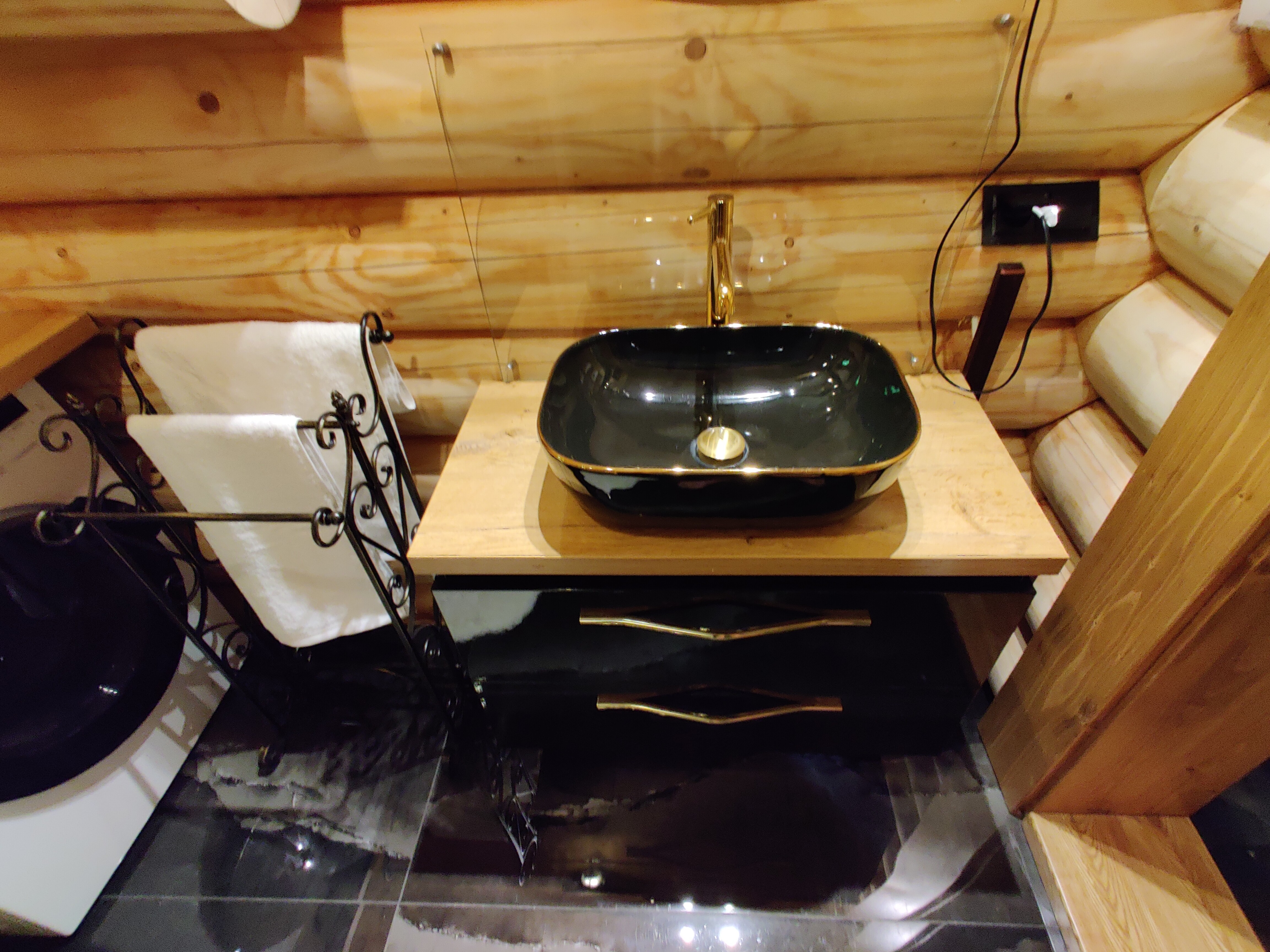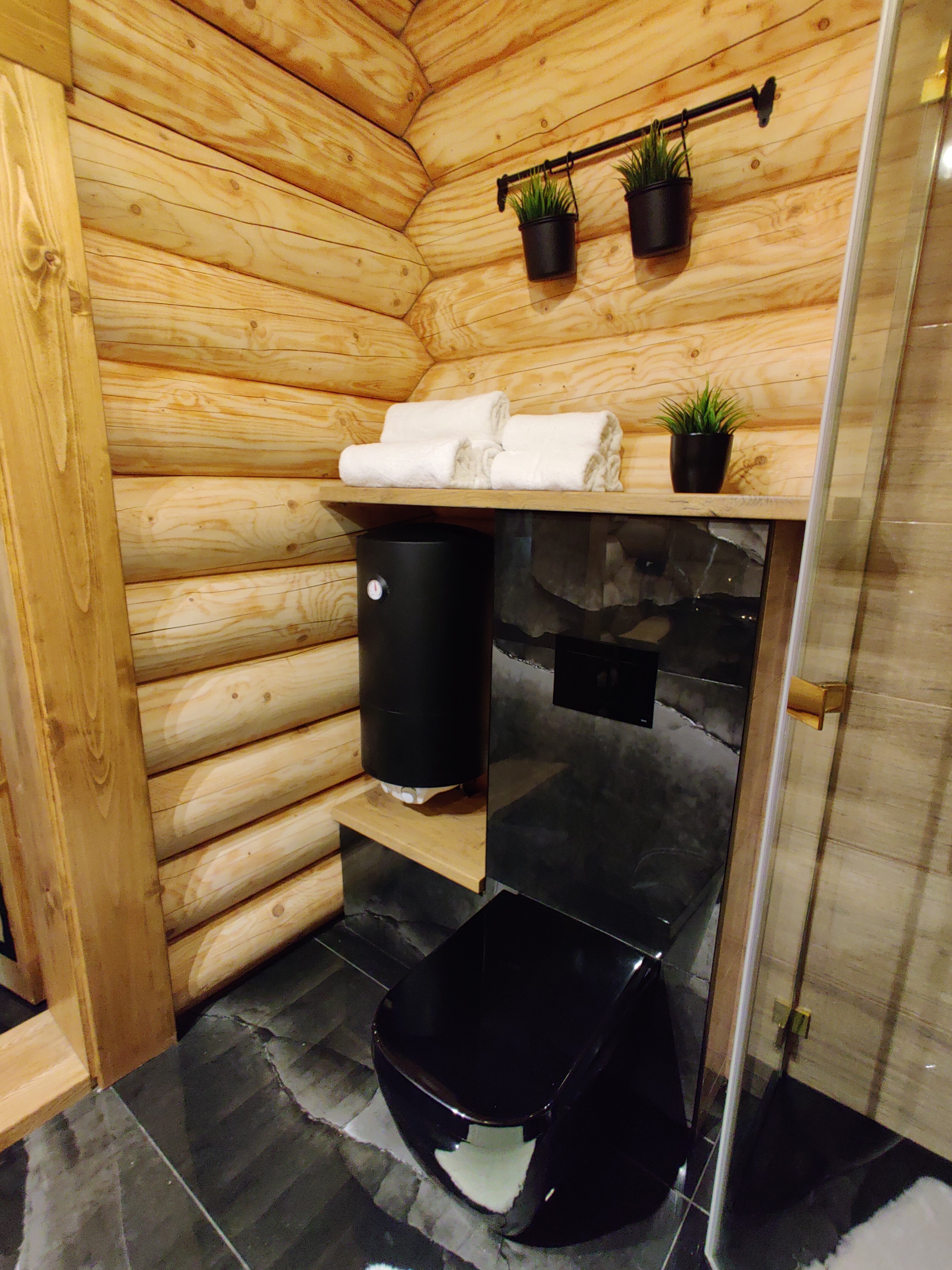 Domek wyposażony jest w pralko-suszarkę, lodówkę, zmywarkę, suszarkę, zestaw do prasowania, expres do kawy, Smart TV, gry planszowe jacuzzi oraz w pełni wyposażoną kuchnie